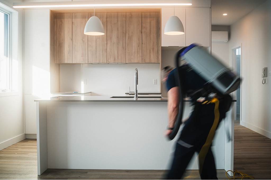 Élimination de la poussière de chantier, traitement des résidus, protection des surfaces neuves.